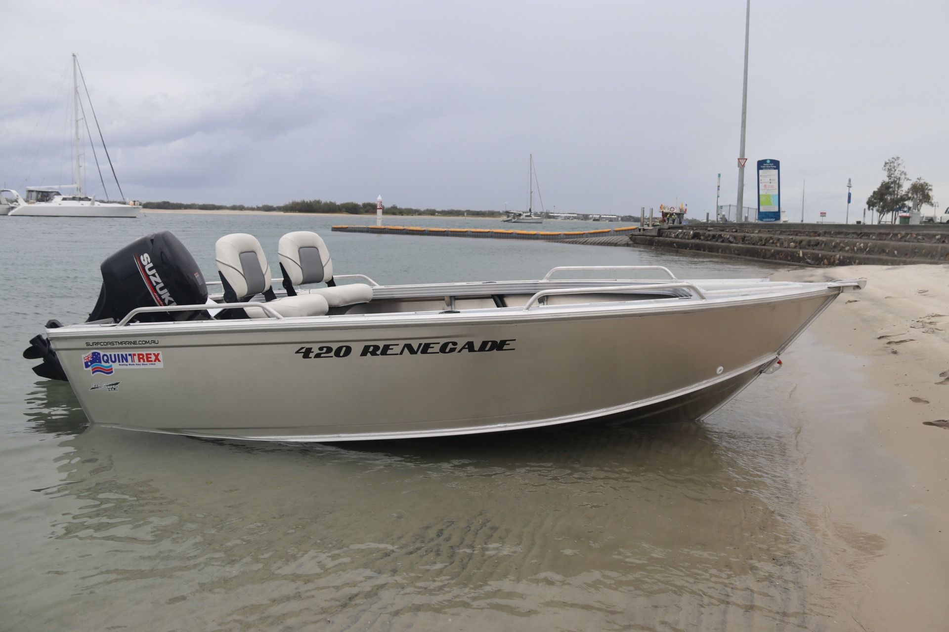 The popular Renegade range has been expanded to include the 420 Renegade TS, and its sure to impress the fisherman of the world. Complete with carpeted floors, rod holders and a live bait tank the 420 Renegade is the no-fuss fishing boat to conquer all!