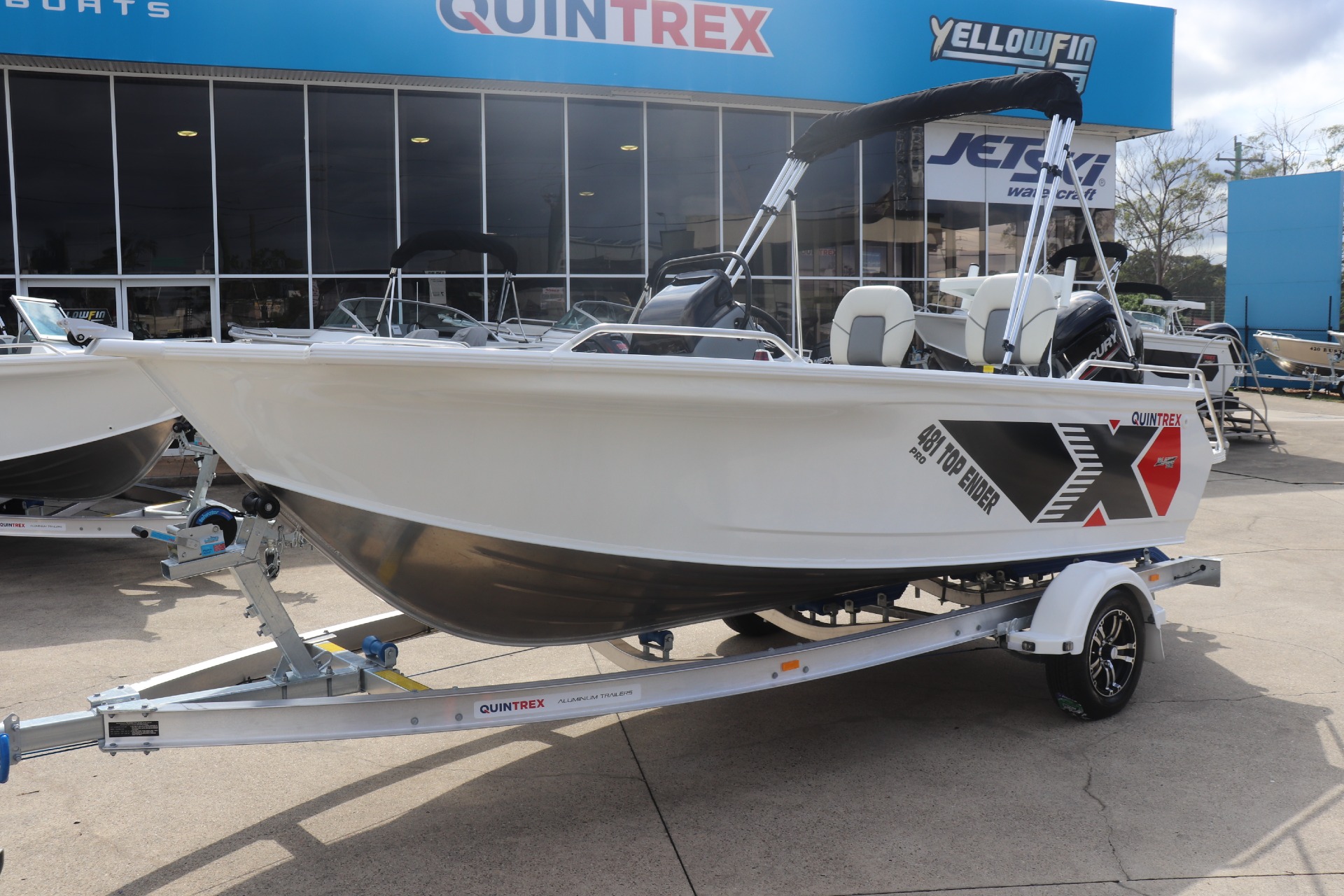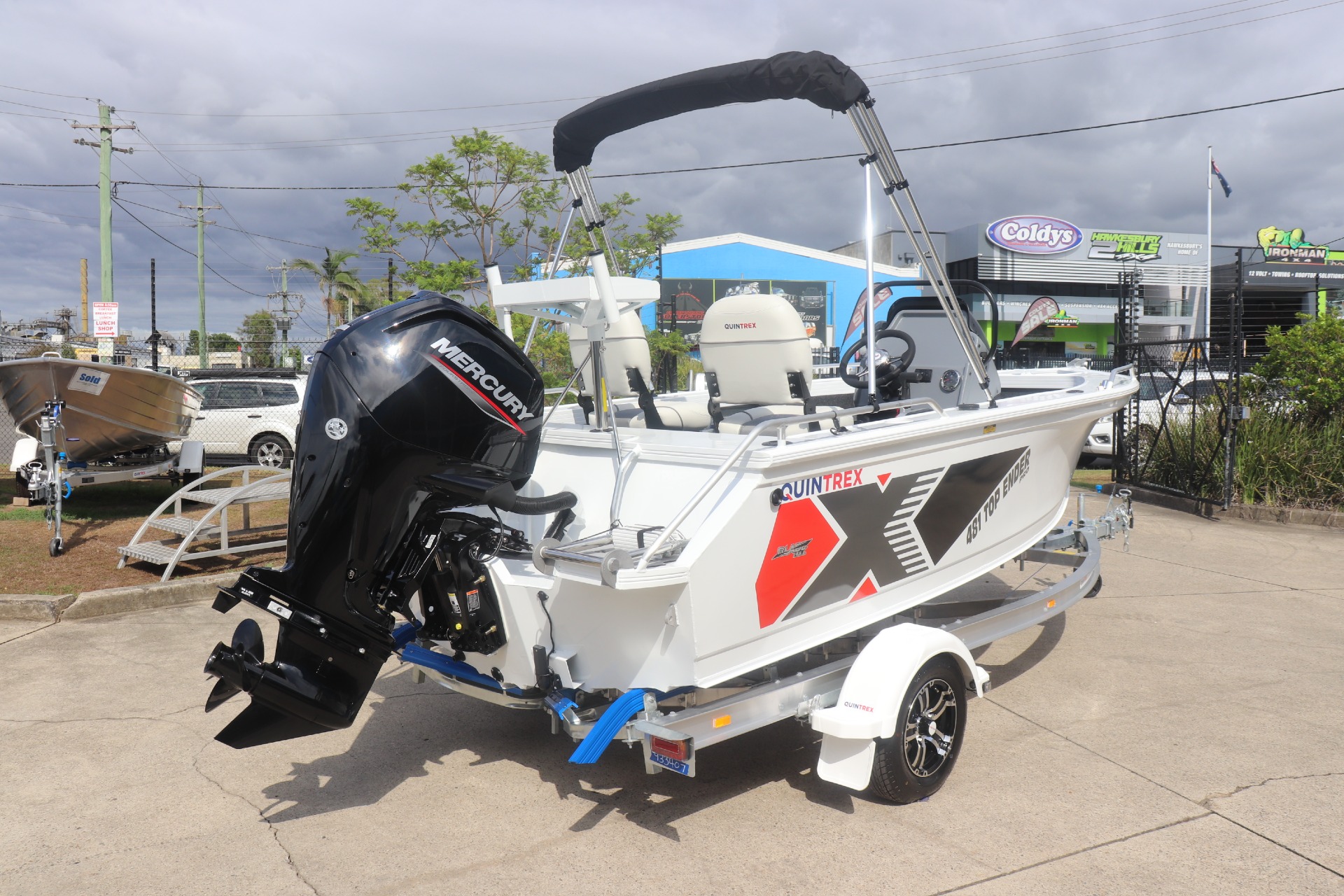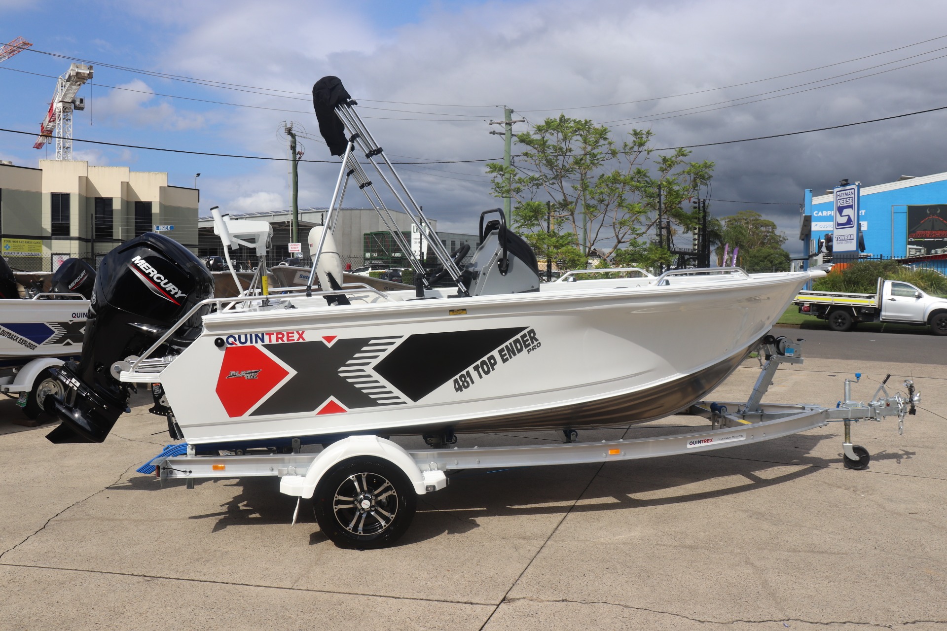 QUINTREX 481 TOP ENDER PRO POWERED BY A MERCURY 90HP 4 STROKE ON A QUINTREX ALLOY TRAILER