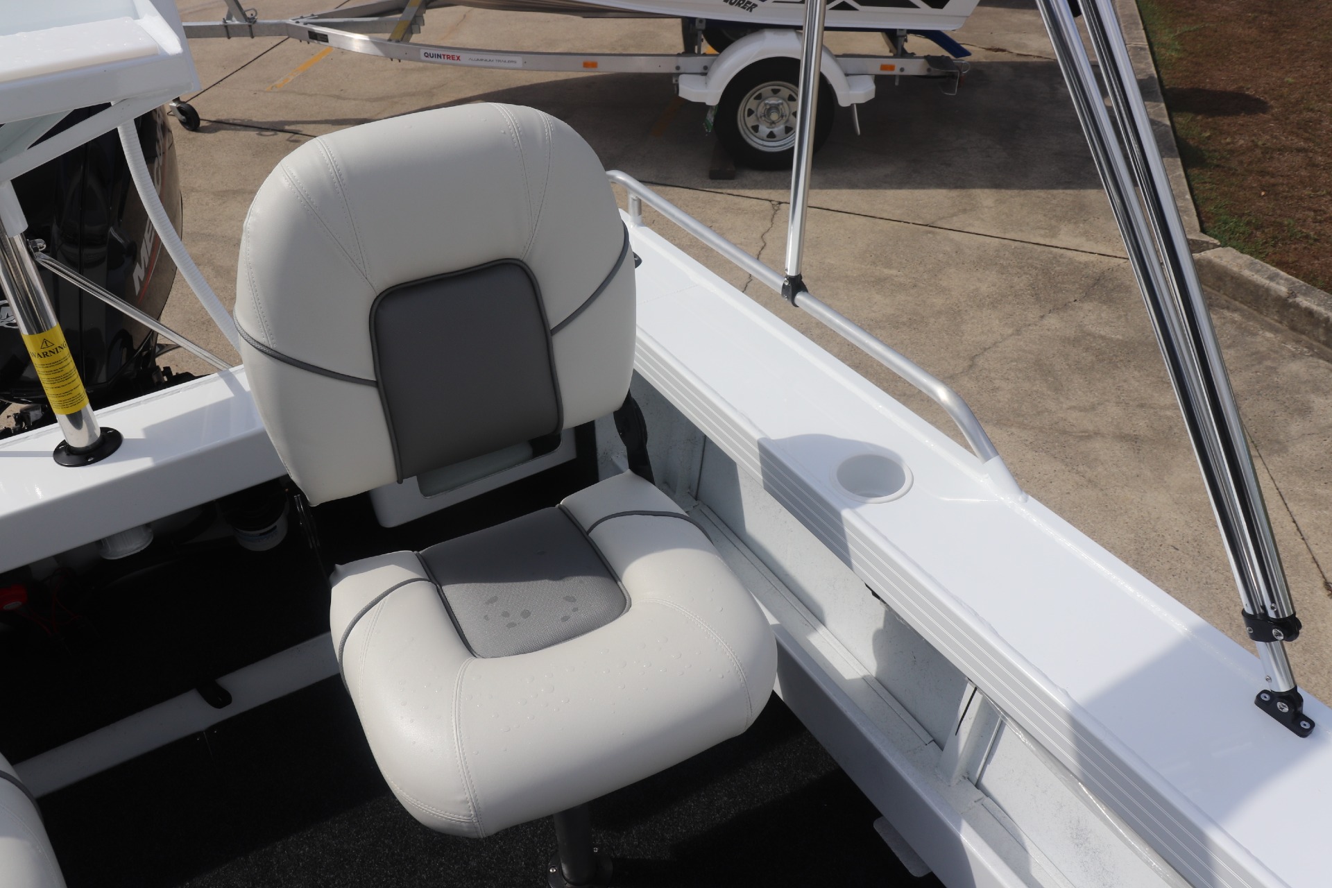 QUINTREX 481 TOP ENDER PRO POWERED BY A MERCURY 90HP 4 STROKE ON A QUINTREX ALLOY TRAILER ***BOAT IS READY FOR IMMEDIATE DELIVERY...ENQUIRE NOW*** PLEASE READ... is a Highly Reputable NSW Quintrex Specialist dealership. All our Quintrex Boats are CORRECTLY advertised showing Standard specifications and detailing the factory fitted options that have been installed to assure you are buying the right Boat. The photos we display in our ads are of the exact boat for sale, powered by the best suggested Horsepower engine assuring you are buying the Perfect boat from a reputable Dealership at a fair price. FEATURES INCLUDE: ALL STANDARD FEATURES Casting Platform Raised Helm: Side Console & Hydraulic Tilt Steering Burley Bucket Cockpit Lights (2) Cutting Board for Ski Pole Drink Holder Cups Glove Box Live Bait Tank Marine Radio Pole Mount Insert Rear Ladder Rod Holders (4) Ski Pole Underfloor Storage Anchorwell Bow Mount Thruster Plate Cleat On Front Deck Side Decks Extruded Side Pockets Transducer Brackets x 2 Welded Gunnels and Top Decks Painted Hull Rail: Transom Grabrail Rails Rails: Console Grabrail Rails: Side Seat Positions (4) Seats: Bass Sport Seats: Pedestal GT54UHD - Transom Mount Transducer Helm: Hydraulic Tilt Steering ADDITIONAL FACTORY FEATURES INCLUDE: Bimini & Envelope Mercury SC1000 Digital Tacho TR MARINE ADDITIONAL FEATURES INCLUDE: 12 Months NSW Boat & Trailer Registrations Paddle, Bucket, Horn & Torch Rear Tie Down Straps Fire Extinguisher Earmuffs (Engine Flusher) Anchor, Rope & Chain 5 x PFD1 Life Jackets *We have a well-stocked undercover Showroom and are open 6 days a week. *Need Finance? We're here to help get you on the water sooner with Mercury Marine Finance *Give us a call today to speak with one of our friendly team members 6 Year Mercury Factory Engine Warranty*