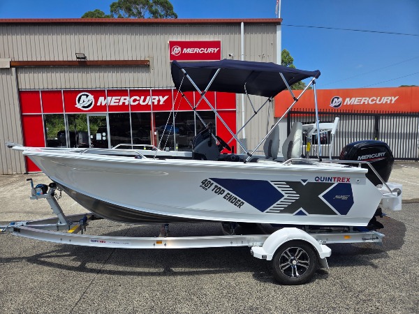 SOLD - QUINTREX 481 TOP ENDER PRO POWERED BY A MERCURY 75HP 4-STROKE. The 481 Top Ender aluminium side console is designed for the more serious of fishers, with the flared bow and 4mm bottom & transom it handles choppy conditions easily. This boat has all of the 481 Top Ender Pro standard features plus a transom door, stainless steel rod holders, fish sport seat upgrade, Garmin EchoMap UHD275SV & a bimini. AD IS FOR AN ORDERED BOAT We can also arrange competitive finance rates T.A.P. and on the spot comprehensive insurance quotes. Do you have a boat to sell? We are always looking for good quality used boats to purchase, sell on consignment or trade. We are a family owned and operated business servicing the Central Coast with Australia's number 1 brands. Dealers for Quintrex, Crownline and Baysport boats, Mercury and Mercruiser engines and stocking only the highest quality used boats, there is no reason why we can't get you into the boat of your dreams. INSINC MARINE CENTRAL COAST QUINTREX NSW DEALER OF THE YEAR 2013/2014 + 2017/2018 + 2022/2023 MERCURY NSW DEALER OF THE YEAR 2020 & 2021