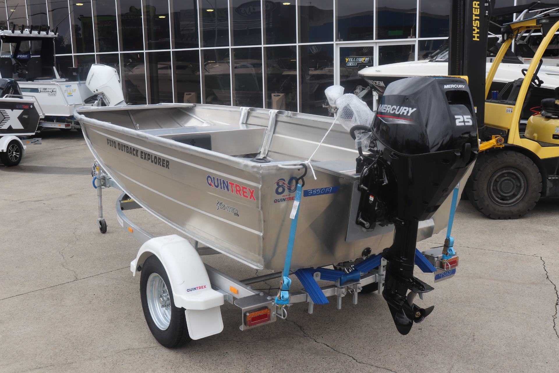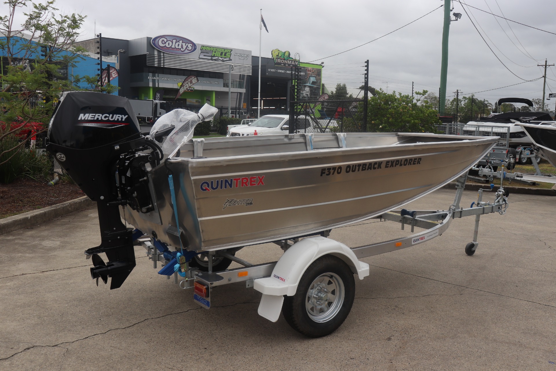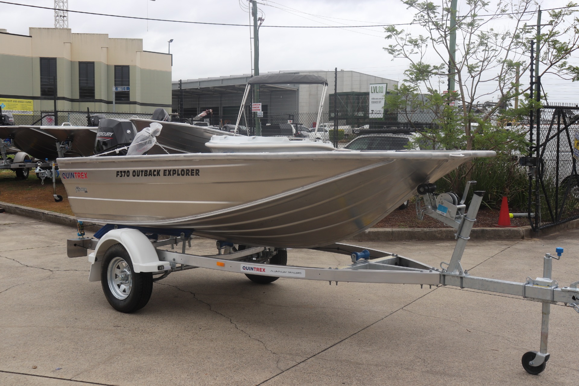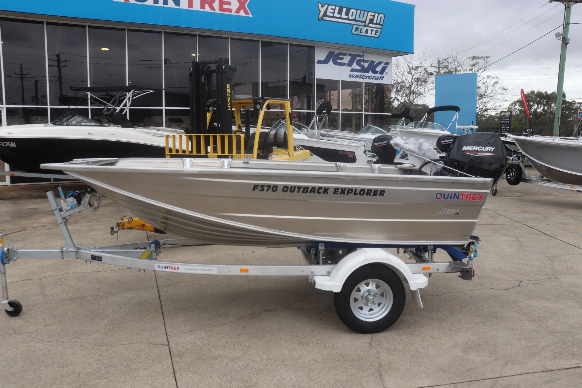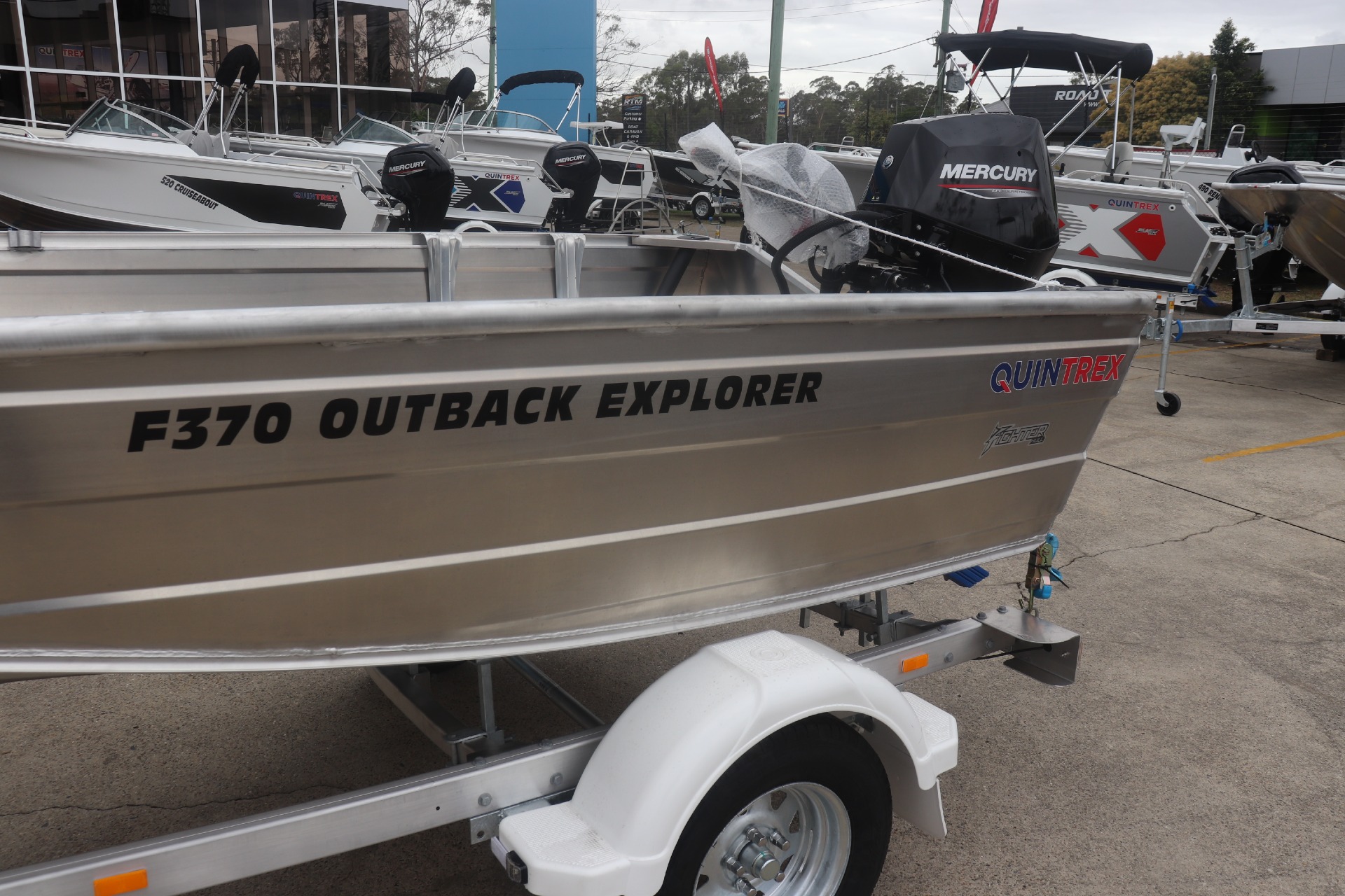 QUINTREX F370 OUTBACK EXPLORER POWERED BY A MERCURY 25ELHPT 4 STROKE ON A QUINTREX ALLOY TRAILER PLEASE READ... is a Highly Reputable NSW Quintrex Specialist dealership. All our Quintrex Boats are CORRECTLY advertised showing Standard specifications and detailing the factory fitted options that have been installed to assure you are buying the right Boat. The photos we display in our ads are of the exact boat for sale, powered by the best suggested Horsepower engine assuring you are buying the Perfect boat from a reputable Dealership at a fair price. FEATURES INCLUDE: ALL STANDARD FEATURES Glove Box Anchor Gusset Flat Foredeck Handle Bow Handles Transom Rowlock Blocks Solid Corners Seats: Bench ADDITIONAL FACTORY FEATURES INCLUDE: Low Center Floor Fuel Tank Rack Transducer Bracket Rod Holders (2) Flipper Guide Kit TR MARINE ADDITIONAL FEATURES INCLUDE: 12 Months NSW Boat & Trailer Registrations Paddle, Bucket, Horn & Torch Rear Tie Down Straps Fire Extinguisher Earmuffs (Engine Flusher) 4 x PFD1 Life Jackets Anchor, Rope & Chain *We have a well-stocked undercover Showroom and are open 6 days a week. *Need Finance? We're here to help get you on the water sooner with Mercury Marine Finance *Give us a call today to speak with one of our friendly team members 6 Year Mercury Factory Engine Warranty*