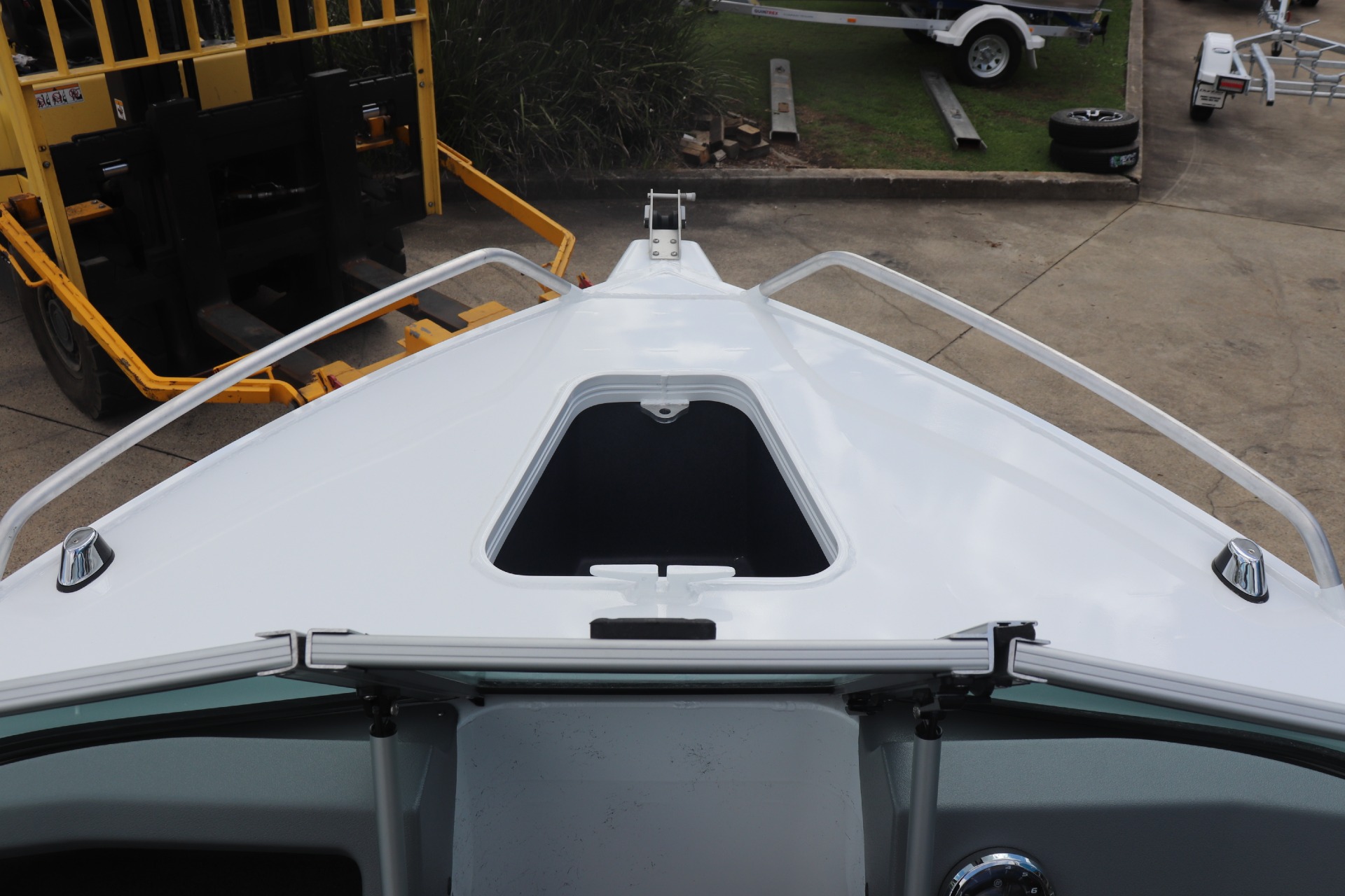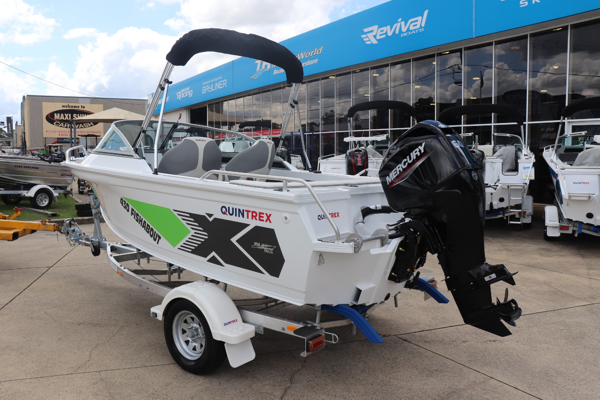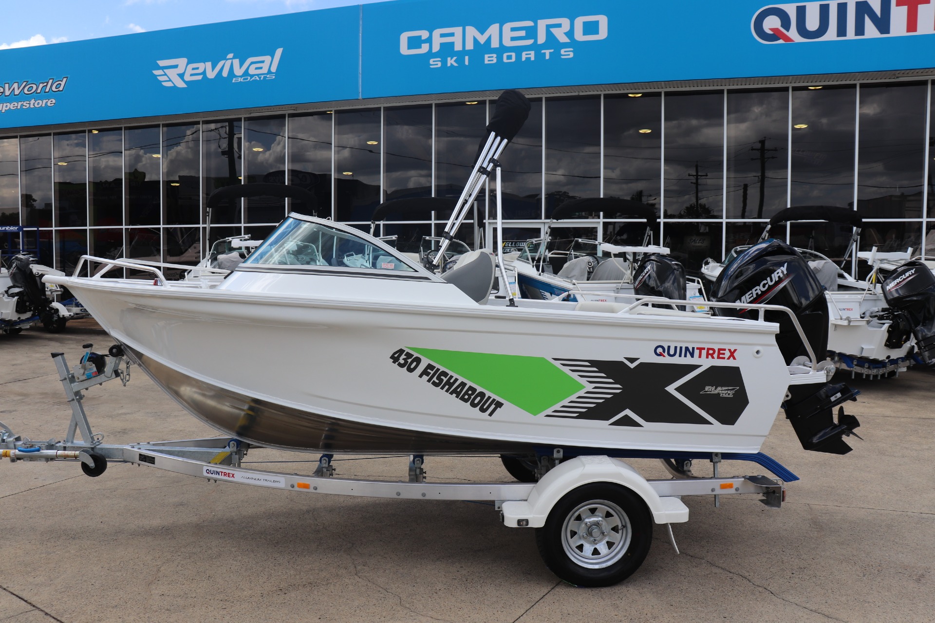 QUINTREX 430 FISHABOUT POWERED BY A MERCURY 60HP 4 STROKE ON A QUINTREX ALLOY TRAILER ***BOAT IS NOT IN STOCK - ARRIVING APPROX. LATE FEB/EARLY MARCH*** Painted Hull - White Front Stripe - Light Red Rear Stripe - Black PLEASE READ... is a Highly Reputable NSW Quintrex Specialist dealership. All our Quintrex Boats are CORRECTLY advertised showing Standard specifications and detailing the factory fitted options that have been installed to assure you are buying the right Boat. THE PHOTOS DISPLAYED ARE NOT OF THE ADVERTISED BOAT FEATURES INCLUDE: ALL STANDARD FEATURES: Battery Box Bow Roller Glove Box Pole Mount Insert Rear Ladder Rod Holders (2) Anchorwell Cleat On Front Deck Extruded Side Decks Fully Weld Gunnels & Side Decks Lean Through Dash Side Pockets Sports Dash Transducer Brackets x 2 Painted Hull Rail: Transom Grabrail Rails Rails: Side Windscreen Seat Slider Seats: Angler Sport Seats: Rear Lounge and Backrest Helm: Mechanical Tilt Steering ADDITIONAL FACTORY FEATURES INCLUDE: Comfort Pack - Bimini & Envelope - Deluxe rear Lounge & Backrest - Upgraded Maritime Sports Seats Flipper Guide Kit Cargo/Luggage Netting Garmin Striker VIVID 7SV Mercury SC1000 Digital Tacho Upgraded Steering Wheel TR MARINE ADDITIONAL FEATURES INCLUDE: 12 Months NSW Boat & Trailer Registrations Paddle, Bucket, Horn & Torch Rear Tie Down Straps Fire Extinguisher Earmuffs (Engine Flusher) 5 x PFD1 Life Jackets Anchor, Rope & Chain *We have a well-stocked undercover Showroom and are open 6 days a week. *Need Finance? We're here to help get you on the water sooner with Mercury Marine Finance *Give us a call today to speak with one of our friendly team members 6 Year Mercury Factory Engine Warranty*
