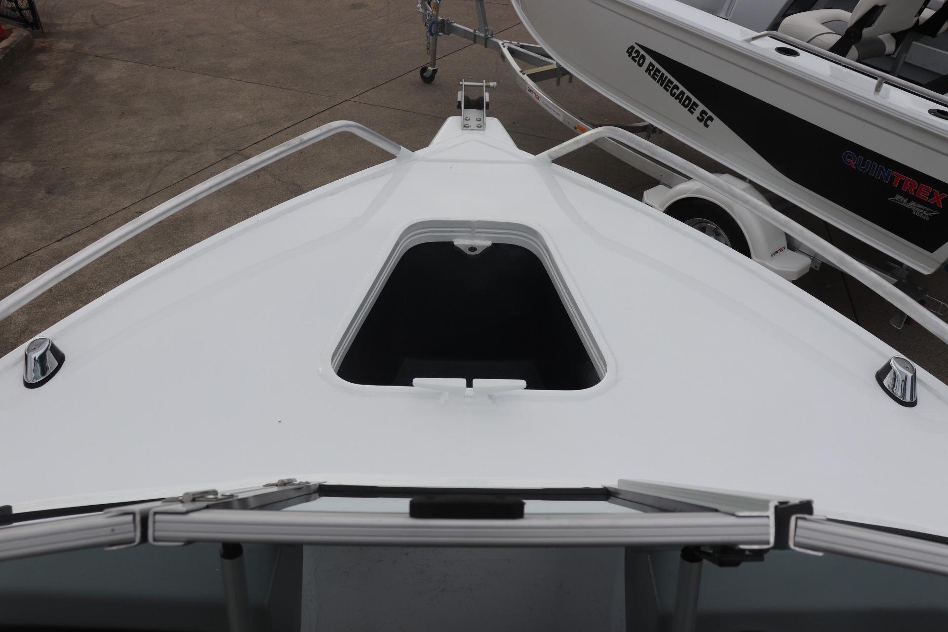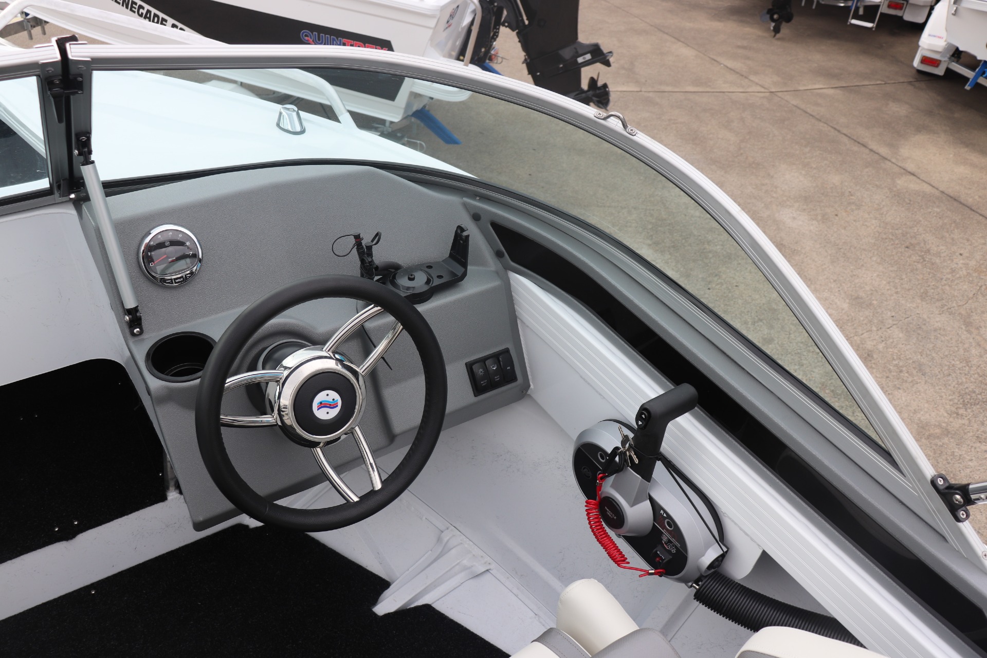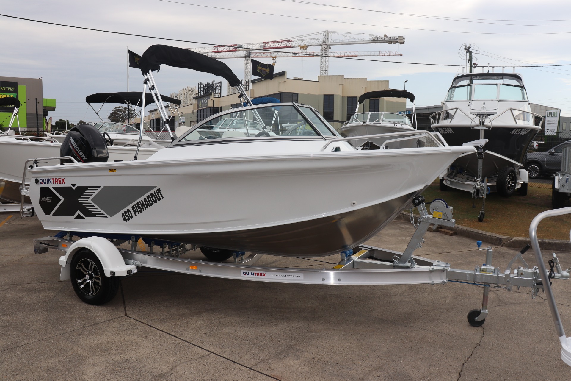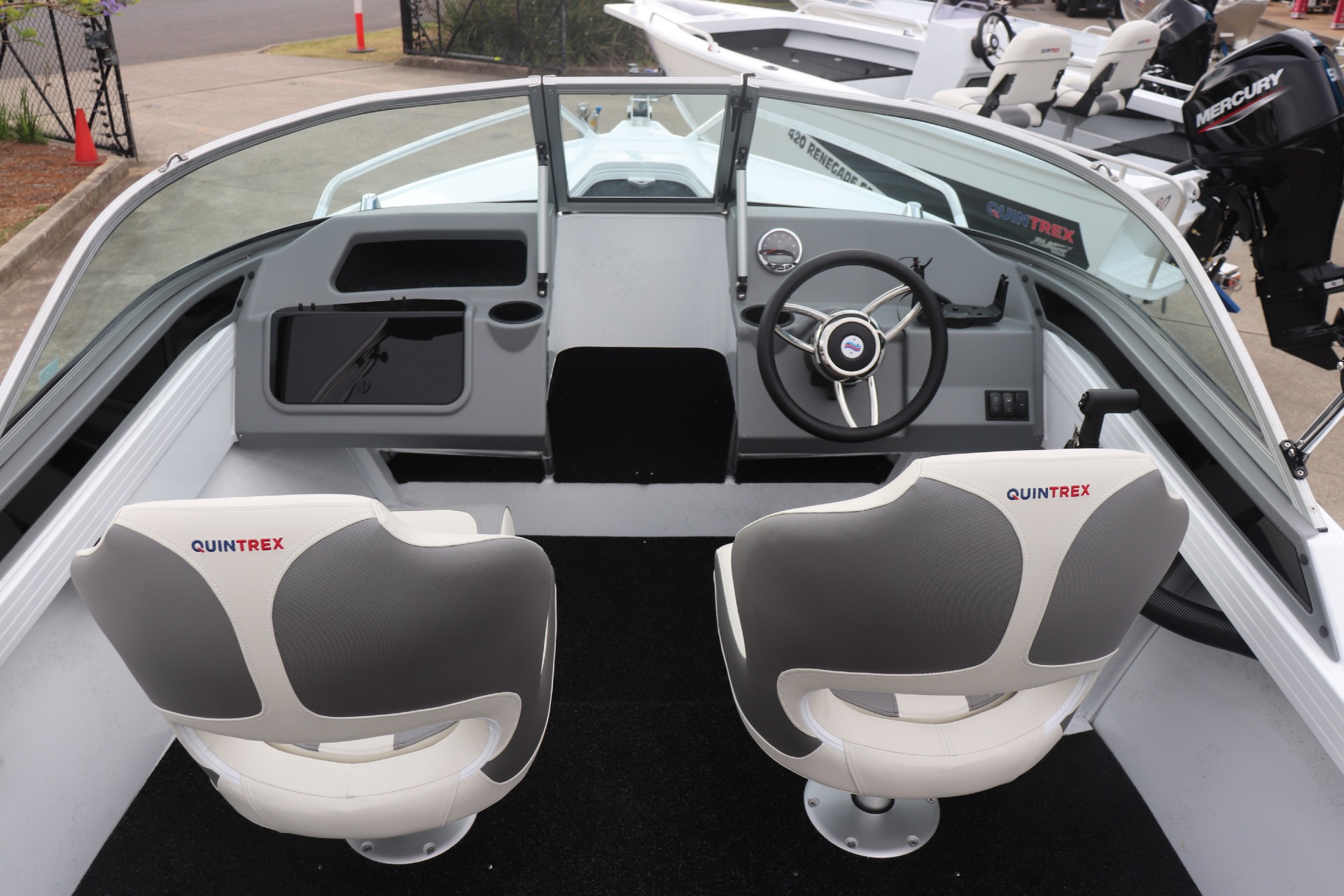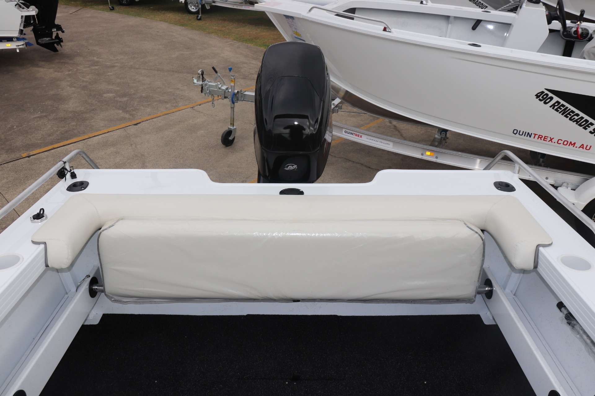 QUINTREX 450 FISHABOUT POWERED BY A MERCURY 60HP 4 STROKE ON A QUINTREX ALLOY TRAILER ***BOAT IS NOT IN STOCK - ARRIVING APPROX LATE FEB/EARLY MARCH*** Painted Hull - White Front Stripe - Olympic Blue Rear Stripe - Ocean Blue PLEASE READ... is a Highly Reputable NSW Quintrex Specialist dealership. All our Quintrex Boats are CORRECTLY advertised showing Standard specifications and detailing the factory fitted options that have been installed to assure you are buying the right Boat. THE PHOTOS DISPLAYED ARE NOT OF THE ADVERTISED BOAT FEATURES INCLUDE: ALL STANDARD FEATURES: Battery Box Bow Roller Glove Box Pole Mount Insert Rear Ladder Rod Holders (2) Anchorwell Cleat On Front Deck Extruded Side Decks Fully Weld Gunnels & Side Decks Lean Through Dash Side Pockets Sports Dash Transducer Brackets x 2 Painted Hull Rail: Transom Grabrail Rails Rails: Side Windscreen Seat Slider Seats: Angler Sport Seats: Rear Lounge and Backrest Helm: Mechanical Tilt Steering ADDITIONAL FACTORY FEATURES INCLUDE: Comfort Pack - Bimini & Envelope - Deluxe rear Lounge & Backrest - Upgraded Maritime Sports Seats Cargo/Luggage Netting Garmin Striker VIVID 7SV Mercury SC1000 Digital Tacho Upgraded Steering Wheel USB Port TR MARINE ADDITIONAL FEATURES INCLUDE: 12 Months NSW Boat & Trailer Registrations Paddle, Bucket, Horn & Torch Rear Tie Down Straps Fire Extinguisher Earmuffs (Engine Flusher) 5 x PFD1 Life Jackets Anchor, Rope & Chain *We have a well-stocked undercover Showroom and are open 6 days a week. *Need Finance? We're here to help get you on the water sooner with Mercury Marine Finance *Give us a call today to speak with one of our friendly team members 6 Year Mercury Factory Engine Warranty*