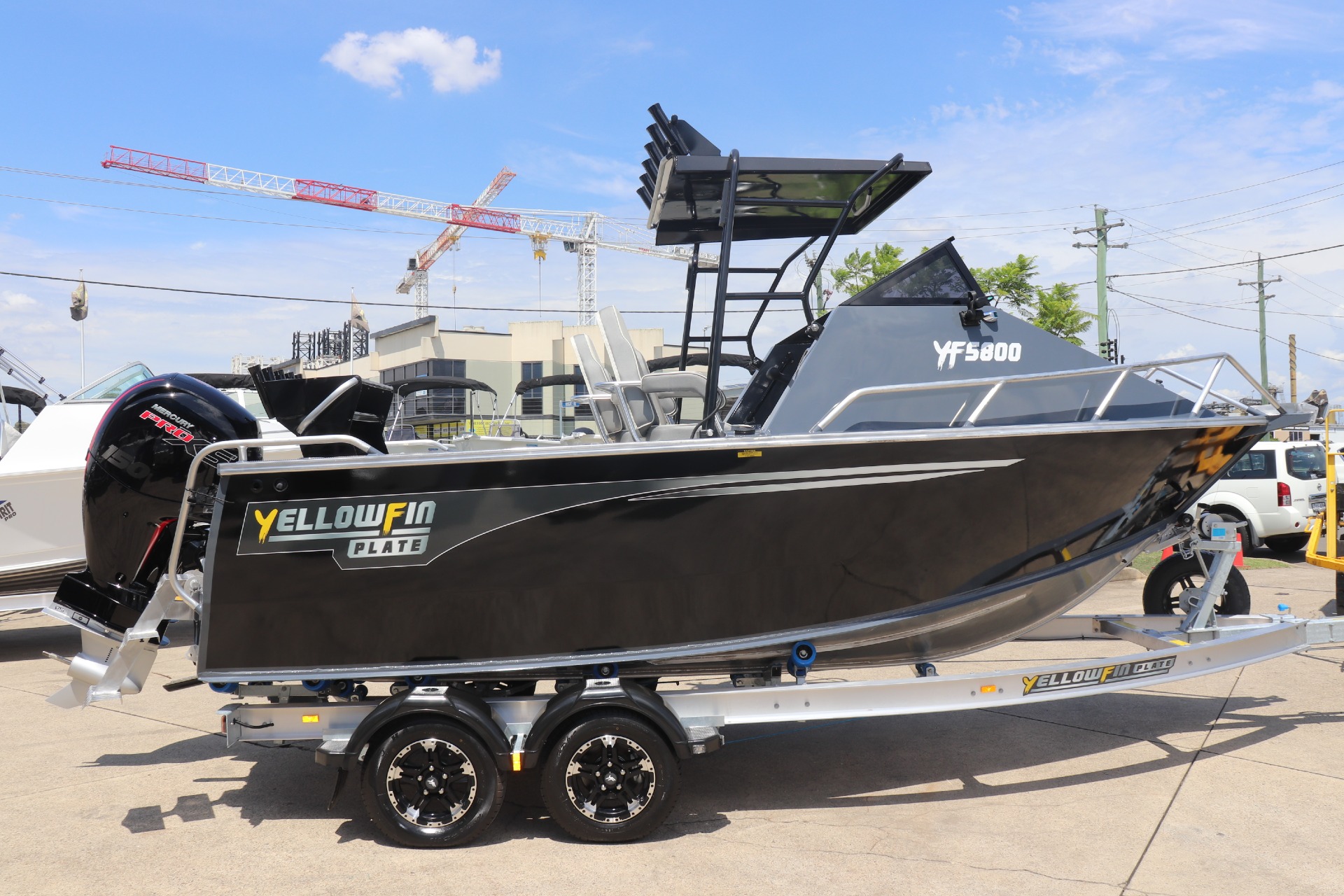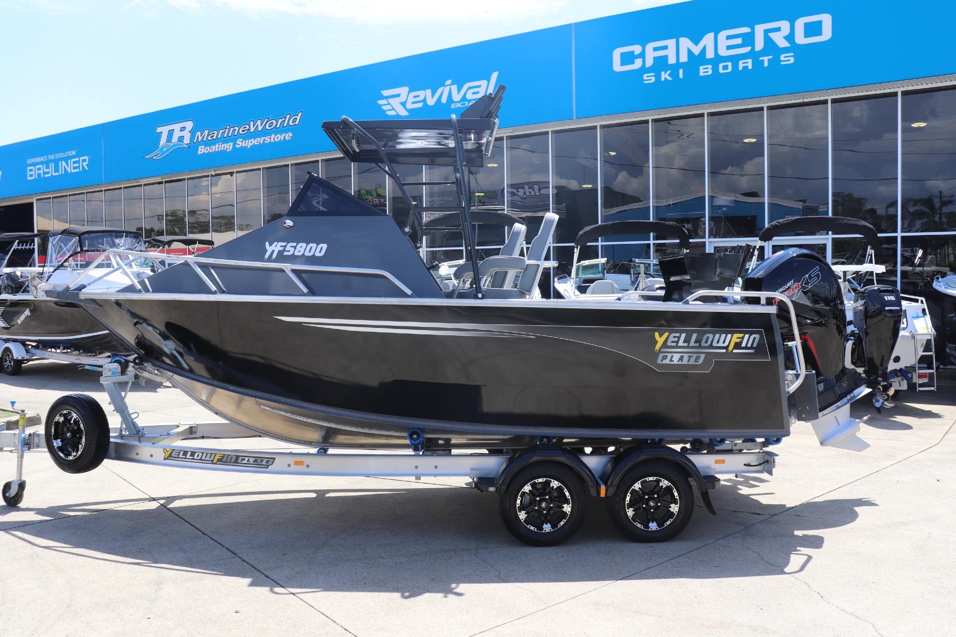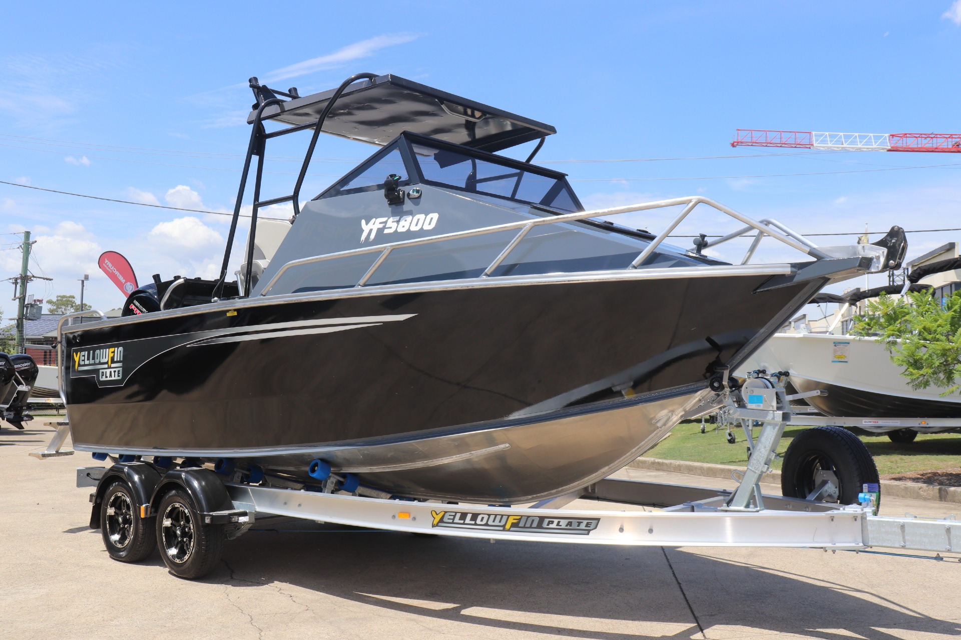 YELLOWFIN 5800 FOLDING HARD TOP POWERED BY A MERCURY 135HP 4 STROKE ON A YELLOWFIN ALLOY TRAILER ***BOAT IS NOT IN STOCK, ARRIVING APPROX MID/LATE FEB 2026*** PLEASE READ... is a Highly Reputable NSW Yellowfin Plate Specialist dealership. All our Yellowfin Boats are CORRECTLY advertised showing Standard specifications and detailing the factory fitted options that have been installed to assure you are buying the right Boat. THE PHOTOS DISPLAYED ARE NOT THE ADVERTISED BOAT FEATURES INCLUDE: ALL STANDARD FEATURES: Accessory kit Carpet: Cabin Storage & Lids Drink Holder Cups Live Bait Tank Maxi Bracket Outrigger Mounting Plates Rod Holders (4) Scuppers Twin Battery Box & Switch X-Bollard Self Drain Floor Self Drain Floor Treadplate Anchorwell Bowroller Cabin Footrest Fully Weld Gunnels & Side Decks Side Pockets Transducer Brackets x 2 Trim Tabs Welded Gunnels and Top Decks Unpainted Gunnels & Transom Rails: Bowrails Rails: Cabin Grabrail Rails: Side Cabin Windscreen Seats: Helm Box with Hatch Seats: Nav. Box with Hatch Seats: Sea Sport Hydraulic Steering Transom Door ADDITIONAL FACTORY FEATURES INCLUDE: Platinum Pack * VHF Radio * Rear Backrest & Lounge * Rear Dive Ladder * Sinker Cups (2) * Spare Wheel & Carrier + Cover * Transom Cutting Board * Burley Bucket * Cabin Backrest & Cushions * Cabin Carpeted Lining * Deck Wash * LED Light Kit Painted Hull - White Mercury Vessel View 403" Engine Display Screen Front & Side Clears Garmin ECHOMap UHD2 95sv TR MARINE ADDITIONAL FEATURES INCLUDE: - 12 Months NSW Boat & Trailer Registrations - Paddle, Bucket, Horn & Torch - Rear Tie Down Straps - Fire Extinguisher - Earmuffs (Engine Flusher) *We have a well-stocked undercover Showroom and are open 6 days a week. *Need Finance? We're here to help get you on the water sooner with Mercury Marine Finance *Give us a call today to speak with one of our friendly team members 6 Year Mercury Factory Engine Warranty*