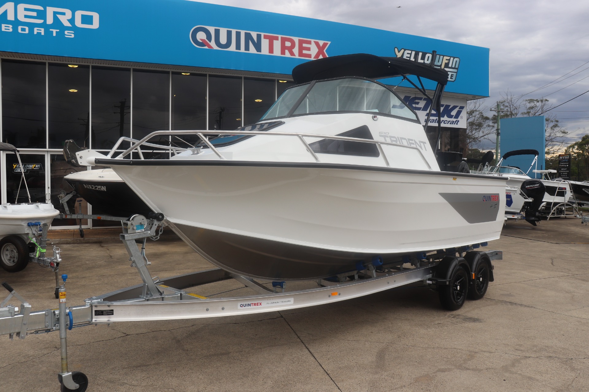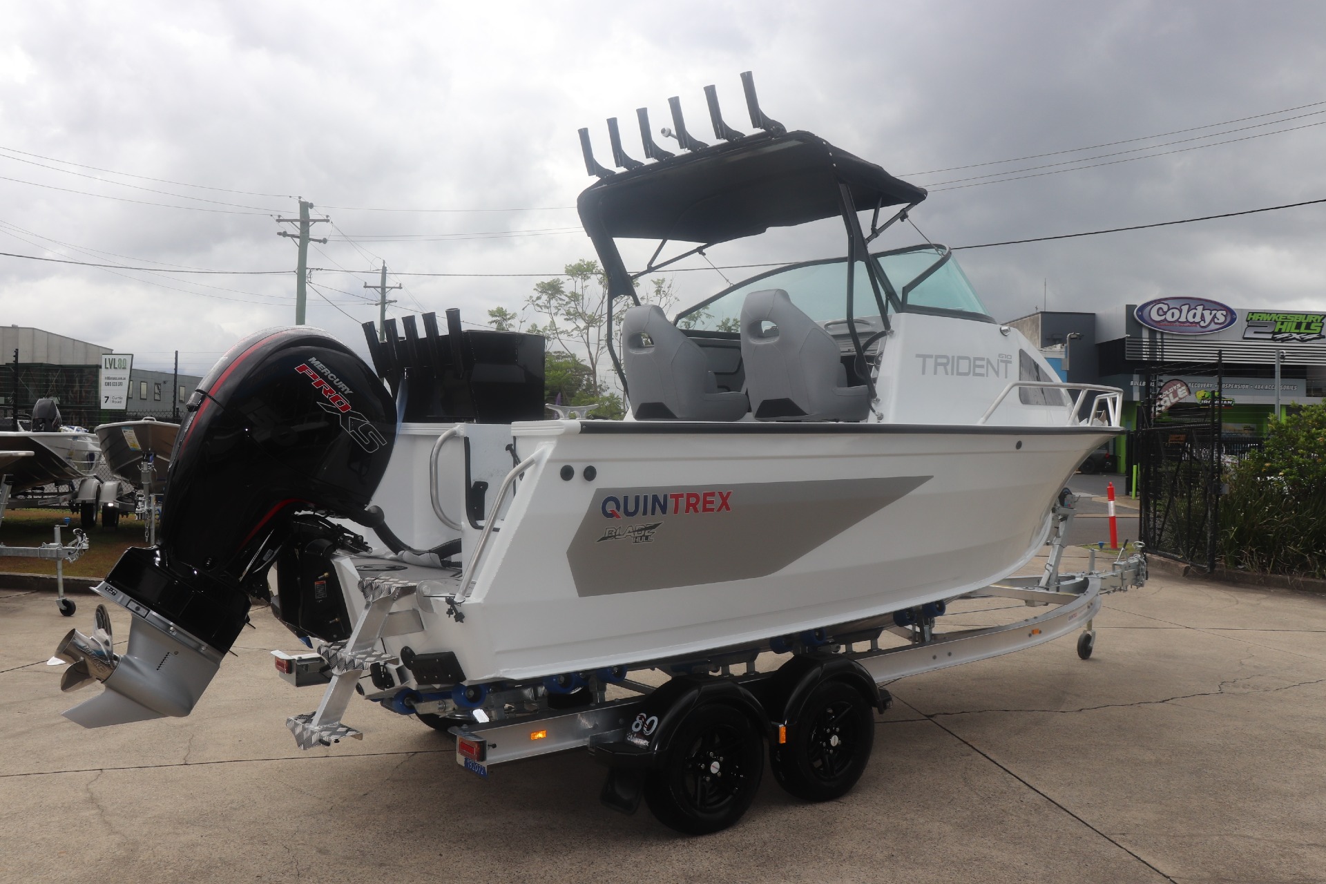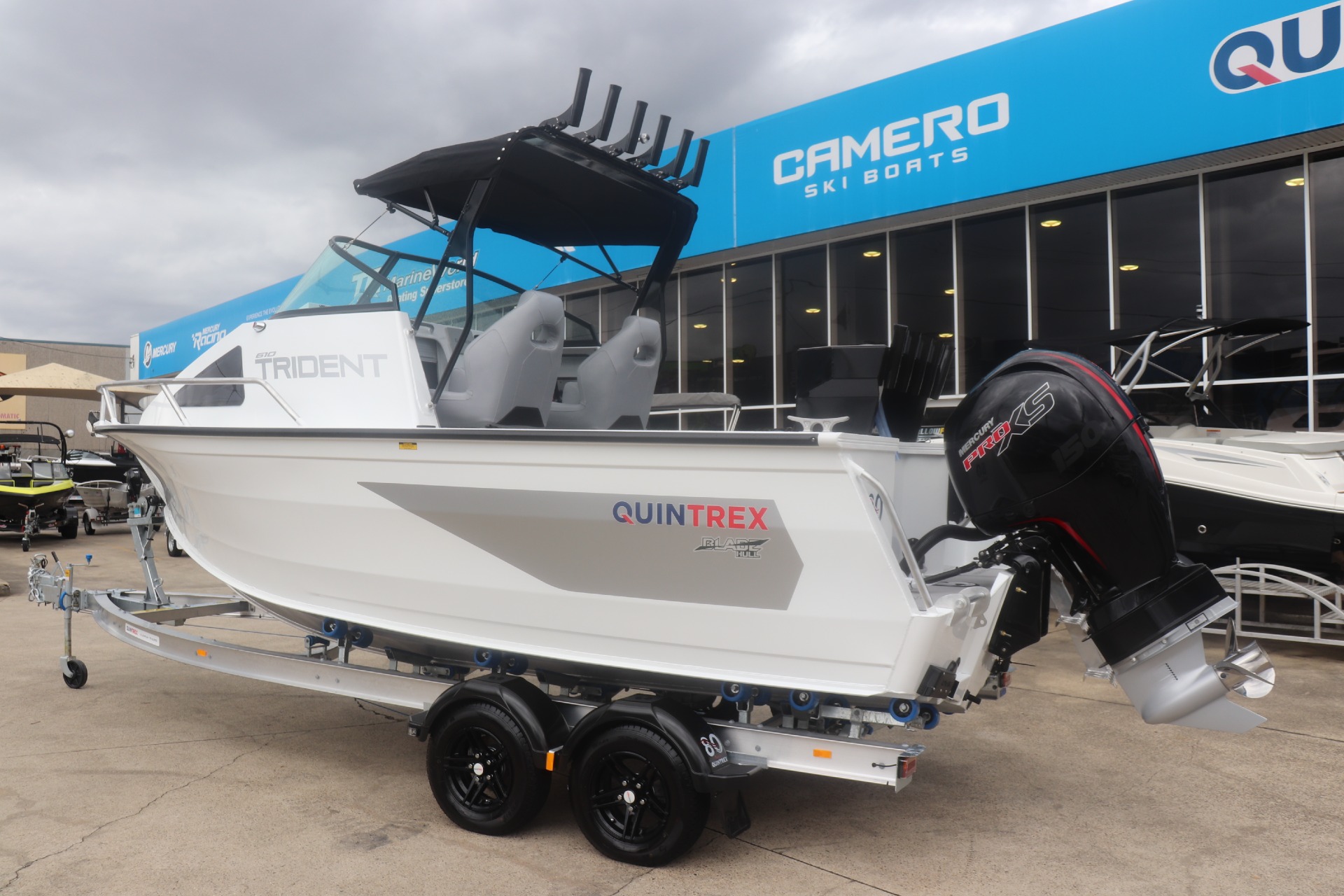 NEW MODEL 610 TRIDENT PRO SOFT TOP POWERED BY A MERCURY 150HP PRO XS 4 STROKE ON A QUINTREX ALLOY TANDEM TRAILER PLEASE READ... is a Highly Reputable NSW Quintrex Specialist dealership. All our Quintrex Boats are CORRECTLY advertised showing Standard specifications and detailing the factory fitted options that have been installed to assure you are buying the right Boat. The photos we display in our ads are of the exact boat for sale, powered by the best suggested Horsepower engine assuring you are buying the Perfect boat from a reputable Dealership at a fair price. FEATURES INCLUDE: ALL STANDARD FEATURES Carpeted Cabin Lining U-Dek Kit 12V Outlet Anchorwell Bowroller Live Bait Tank Rear Dive Ladder Cup Holders (6) Switch Panel Twin Battery Box & Switch Accessory Kit Large Burley Bucket Cabin Footrest Outrigger Mounting Plates Scupper Drain Rod Holders (6) Transom Accessory Bracket (2) Zipwake Trim Tabs Sealed Alloy Checker Plate Flooring Fuel Tank 200LTR Alloy Side Pockets Cabin Storage & Lids Fully Welded Gunnels & Side Decks Rocket Launcher + Easy Reel Rod Holders Blade Hull Flared Bow Heavy Duty Cleats (3) Transducer Bracket (2) Painted Hull - White Bow Rails Transom Grab Rails Passenger Grab Rails Cabin Hatch Cabin Windscreen Seat Apex Sport Trident seat Boxes GT54UHD Transducer Hydraulic Steering Premium Black Steering Wheel Transom Door ADDITIONAL FACTORY FEATURES INCLUDE: Pro Pack * Bait & Fishing Station Large * Cabin Upholstery - Backrest, Cushions & infill * Wireless phone Charger * Hydraulic Tilt Steering * 75LTR Split Lid Cooler * Rocket Launcher Bimini * Side Coaming Cushions * LED Light Kit * Transom Upholstery * U-Dek Flooring Deck Wash Front Clears Mercury Vessel View 403" Engine Display QTX 80th Anniversary Pack Roller Door Garmin GPSMap 953 9" Sounder USB Port TR MARINE ADDITIONAL FEATURES INCLUDE: 12 Months NSW Boat & Trailer Registrations Fire Extinguisher Paddle, Bucket, Horn & Torch Rear Tie Down Straps 7 x PFD1 Life Jackets Earmuffs (Engine Flusher) *We have a well-stocked undercover Showroom and are open 6 days a week. *Need Finance? We're here to help get you on the water sooner with Mercury Marine Finance *Give us a call today to speak with one of our friendly team members 6 Year Mercury Factory Engine Warranty*
