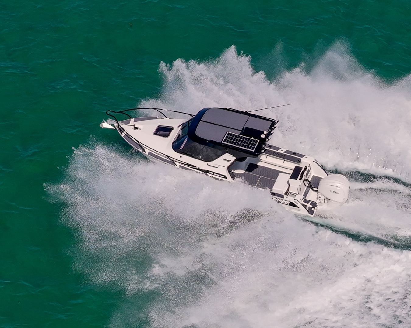 With the 745 Game King you now have the ability to acommodate the rear wall with sliding windows & bifold door, this addition gives you complete protection whether it's a big run home off the shelf or an overnight stay in your favourite spot. Let the 745 Game King take you everywhere your fishing desires, a beautifully built and presented boat capable of catering to every fishing family's needs. 2025 Extreme Gameking 745 Yamaha F300XSB2 Easytow Extreme SA7.0-3500t Alloy 8mm hull upgrade Adjustable footrest driver Anchor plate - drum winch ready Auto bilge upgrade inc switch Bait board - large box style single draw Bait tank aerator pump Binnacle remote box Boarding ladder Burley pot with hinged lid Cabin roller door Cabin squabs inc 5th infill C-Teck charge port twin Cupholder drop in x 4 Dash mat Deck wash Drum winch inc FF Dual battery system inc AGM house extreme trailer catch Extreme fender inc rope & cover Fresh water inc pump - 55lt Fresh water outlet plumbed to tank Gaff racking - side pocket Galley - fridge/freezer 65 litre Gunwale rod holders - 3 per side Handrail swim step Handrails pair inner cable tray Hard top - extended (alloy) Hard top - raised Hard top - solar panel 100 watt in controller Hard top extra row rod holders Helm bulkhead bracket HM EX single DES + joy/pilot - XTO Iceytek 90ltr long Iceytek bin squab Katchya bracket Knee switch hand wash 2nd knee hand wash Large bait tank inc clear window Lighting - 2 x overhead rear deck work lights Lighting - forward cabin Lighting - under gunwale (x 4) Lighting - underwater (x 2 ) Lighting - wheelhouse red/white Paint all rails - black Paint full 1 color Paint hardtop lid Pillar steps (pair) Plugs - USB-c Pre delivery Propeller - salt II SDS v6 4.2lt Raymarine 16" Axiom pro inc 3d Raymarine 1kw (tm265) Rigging kit Safety gear - offshore Seadek flooring complete incl footrest & swim step Seadek gunnels complete inc footrest Seadek inner gunnel pads with extreme logo Seadek roof Seakeeper cable Seat - curved fridge ready - port Seat - curved inc draws - stb Seats - bolstered seats inc slider - pair Soundproof inner cabin Stereo inc Bluetooth - MS-RA670 Switch panel 6-way pillar mounted extra Tinted glass Toilet (flushing) Toilet mount Twin walk thru transom Upholstery - road cover hard top to transom Upholstery - stone chip cover Upholstery upgrade bolstered Upholstery upgrade two tone Vhf cordless upgrade Wiper inc freshwater washer